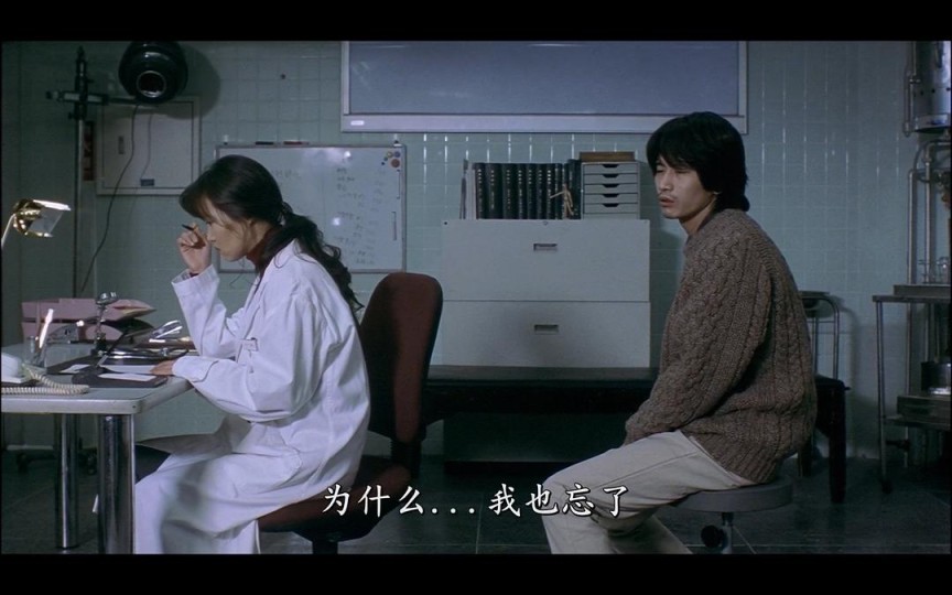 听见水果掉在地上的声音,教师打开了灯,昏暗的空间被照亮,间宫出现在后景,画面变成了景深镜头。