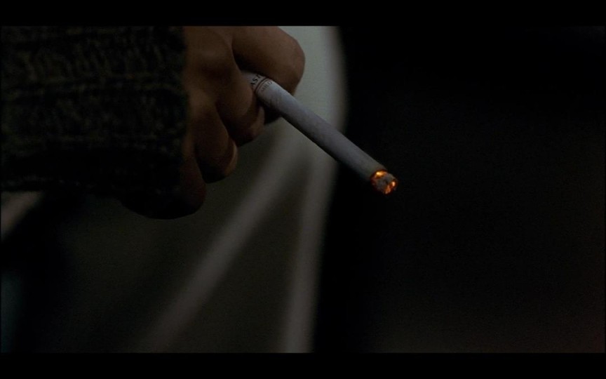 在人物的机械式动作不断改变镜头内空间关系的过程中,这些拍摄对象常常是流动的、变化的,如同人物的精神状态一样不稳定。当我们理解了身体与空间的互动逻辑后,突然出现了一个不包含空间关系的特写镜头,那么它一定是景深镜头的反义词——人物的精神状态已然崩塌。看到了特写镜头,我们立刻就会明白,这个人一定会去杀人了。