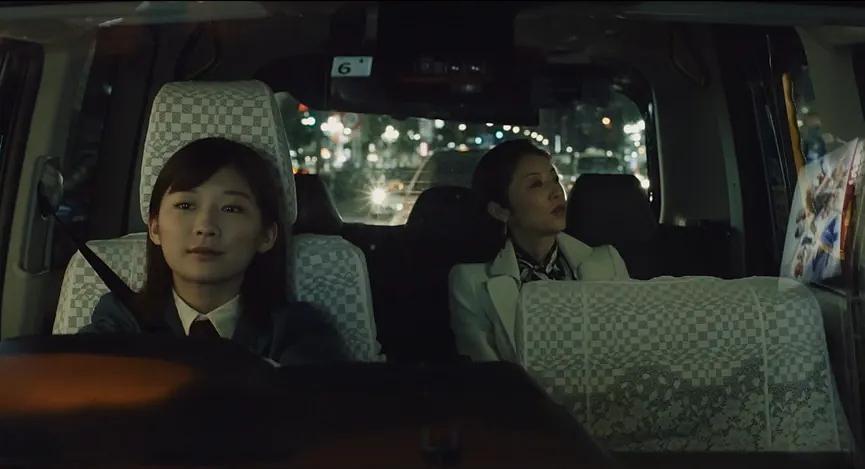 松居大悟展现车内空间的镜头是较为单一且统一的,一言蔽之,是完全交由叶来掌控的:只有当她未接到乘客时,才会有由车内部向外的镜头,这模拟她的视线对城市和人的观察;而当车上有人时,镜头总是将所有人物的面孔包含其中,显然这代表叶更关注身边的人和他们的言语;值得注意的是,当叶和照生坐在由别人驾驶的出租车上时,二人交谈时镜头不展现开车的司机,只有当这位司机回过头和二人说话时,借助叶的视线才从正反打中向我们展示这位司机的面孔——这段镜头设计很好地体现了出租车这一空间是叶的领地,围绕其产生的镜头皆来自叶的目光——不管是真实的目光还是心中的目光。