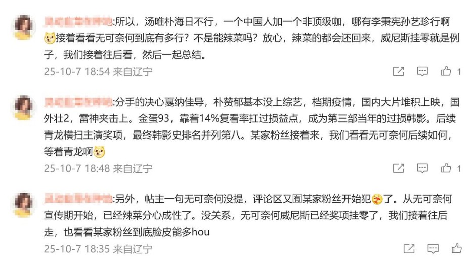 《小姐》为什么要拉踩《蝙蝠》?《蝙蝠》是2009年4月的片子,新浪微博2009年8月28日才上线公测,没有社交媒体公共空间怎么讨论?《分心》上映时又为什么要带上 《小姐》?一个2022年的电影一个2016年的电影。更何况2016年《小姐》上映时在微博上讨论,是因为听说这部韩国电影改编自英剧《指匠情挑》,这才有了兴趣,不然朴赞郁是男是女面长面短谁会关心。