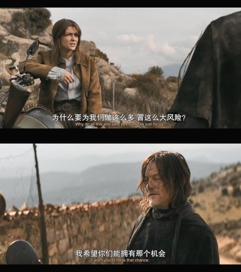 半路上,通过贾斯汀娜问“为什么”的机会,达里尔难得透露了心声:我失去了太多已经无法再拥有的东西,而且找不回来了,但你们还有机会。